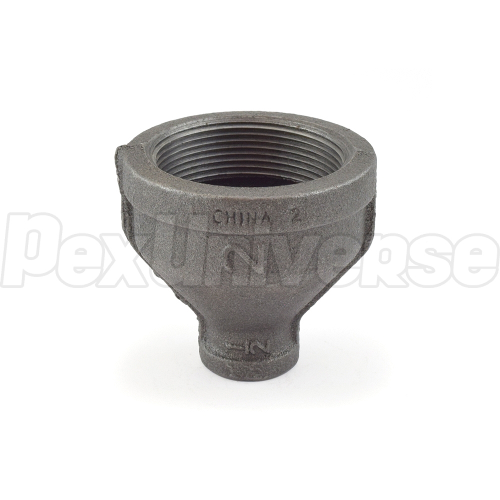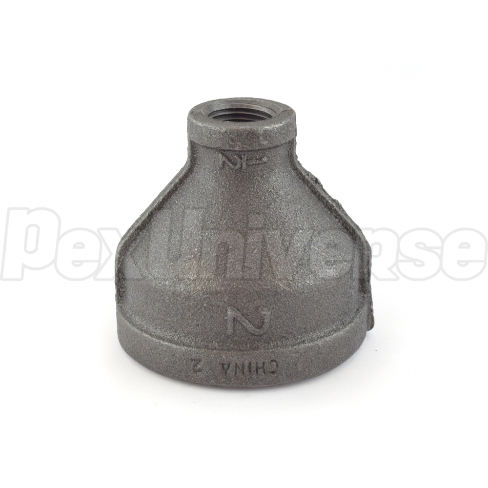 This black malleable iron coupling connects 2" and 1/2" pipes together in a straight line. Approved for potable water use.
