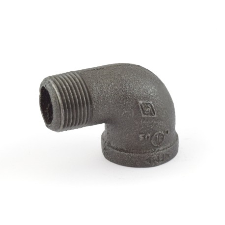 This black malleable iron street elbow connects 3/4" pipe to 3/4" fitting at a 90-degree angle. Approved for potable water use.