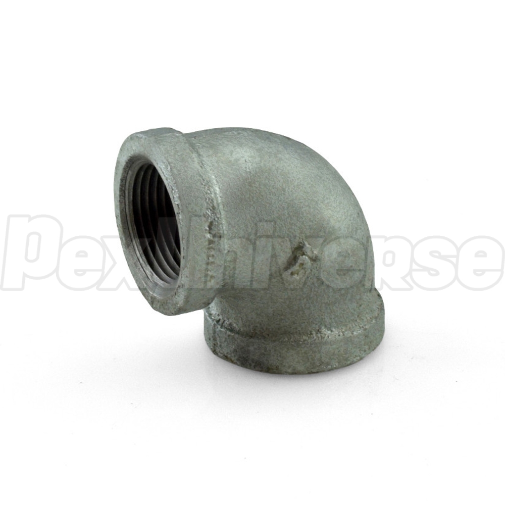 This galvanized elbow fitting connects two 3/4" galvanized pipes or pipe nipples together at a 90-degree angle.