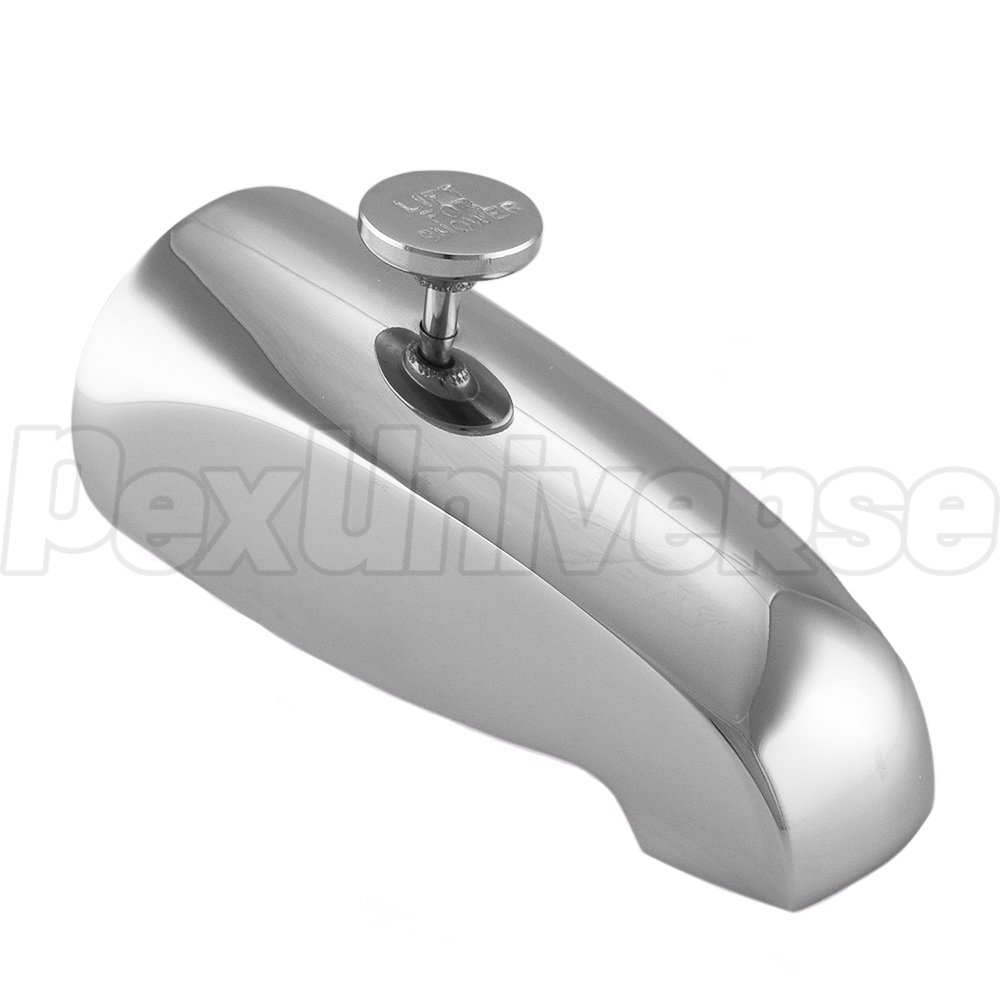 5" long, 1/2" FIP Base Connection Solid Brass Tub Spout w/ Shower Diverter, Chrome Plated