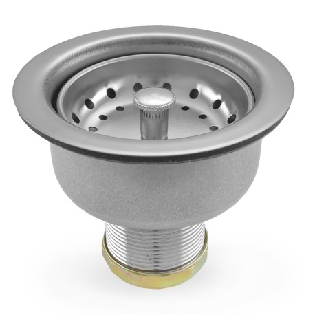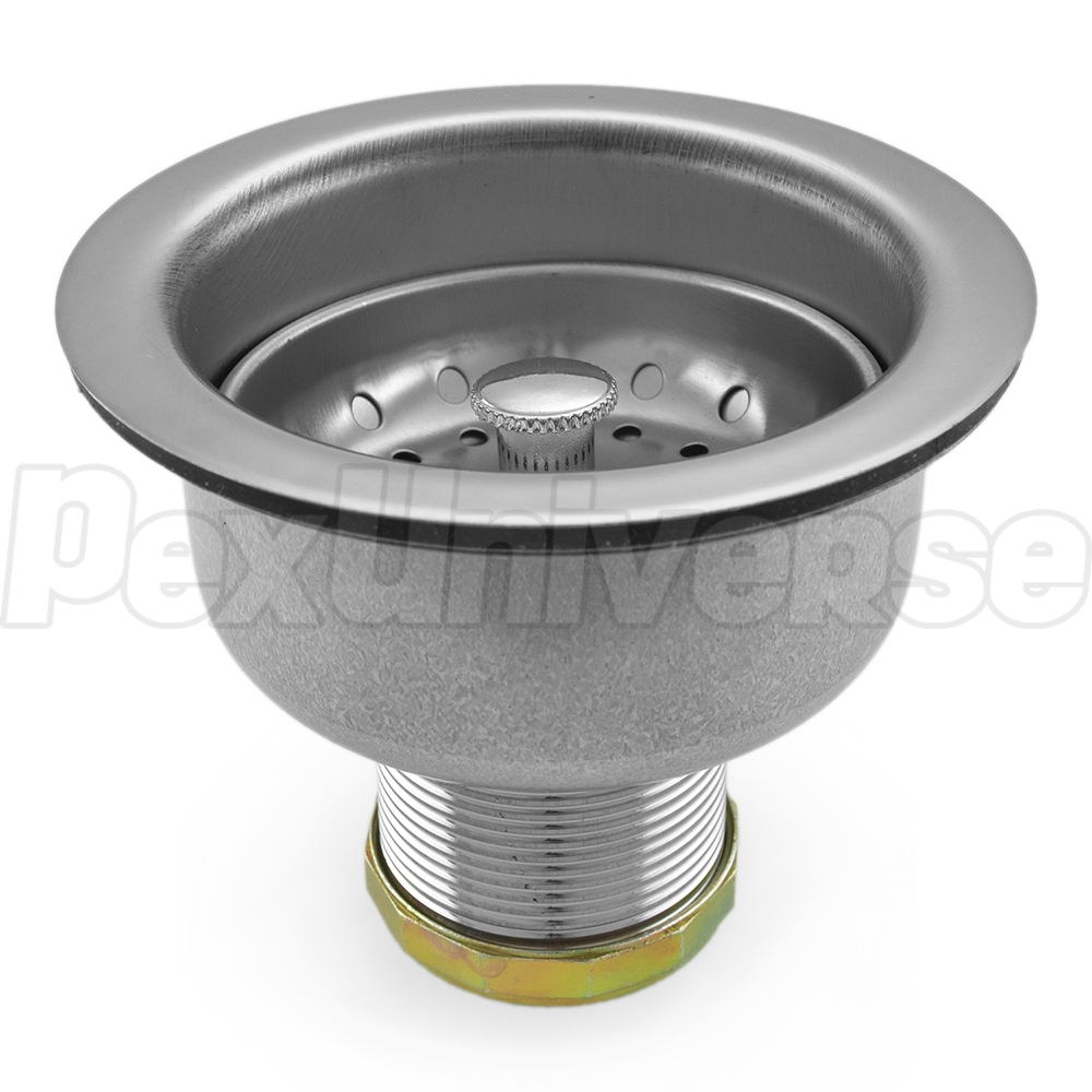 This is a deep type, duo cup stainless steel sink drain with basket strainer and hardware. Install using plumber's putty or Sioux Chief No-Putty gaskets.