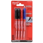 Inkzall pens & markers are ideal for most plumbing and construction jobs and can easily write on a large variety of wet, dry, dusty or oily surfaces, including metal and plastic pipes, concrete, bricks, wood/plywood/OSB and many others. They are designed to resist drying & clogging, roll-off resistant and come with integrated pocket clip for easy carry & storage. Ultra-fine point tip (0.5mm) is best suited for precision markings and making general notes. Qty: 4. Colors: (2) Black, (1) Red, (1) Blue. Tip Style: Ultra Fine Point.