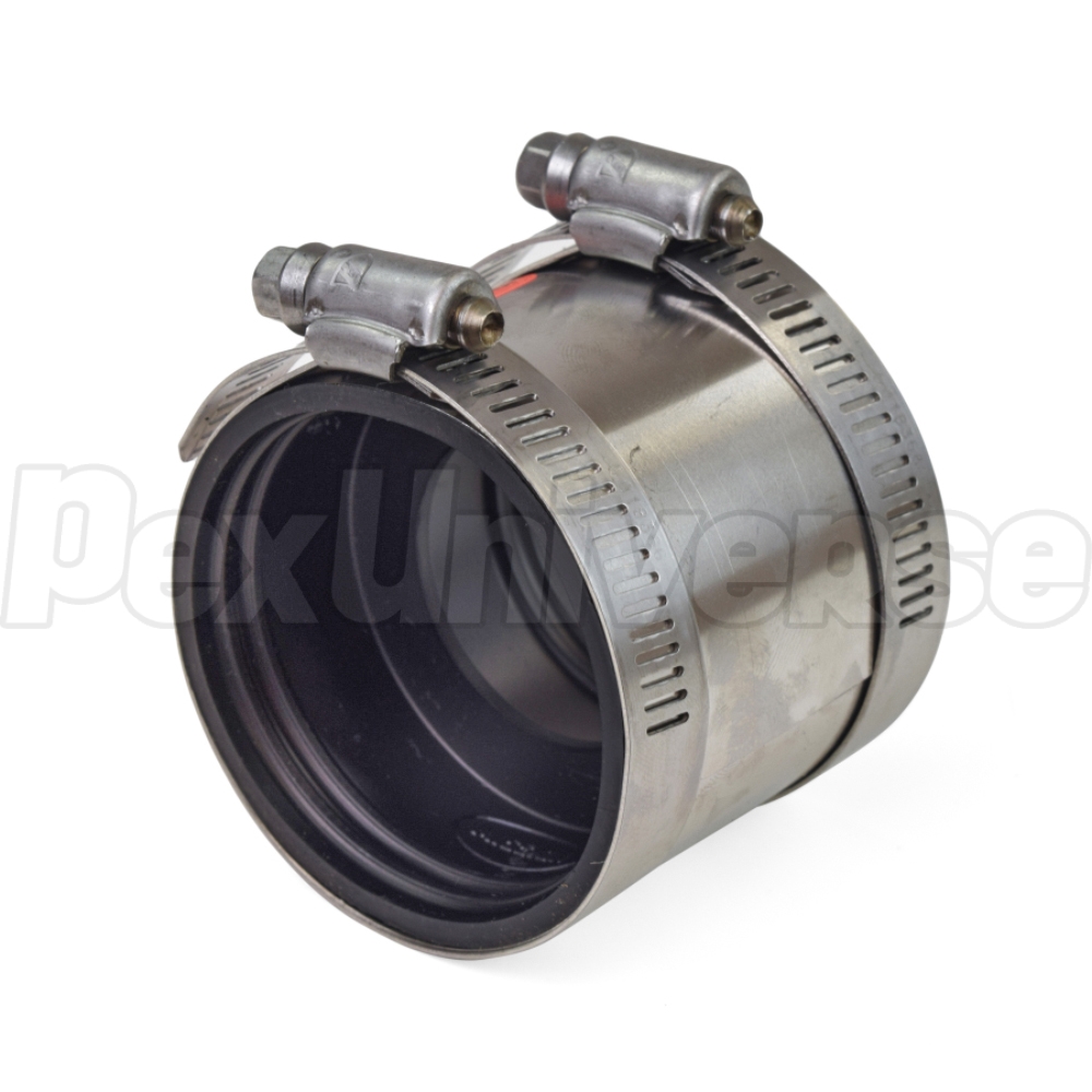 This Mission specialty reducing coupling connects 2" no-hub cast iron/extra-heavy cast iron/plastic/steel pipe to 1-1/2" no-hub cast iron/plastic/steel pipe.