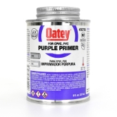 8 oz. can with dauber of Oatey purple primer is perfect for all schedules and classes of PVC and CPVC pipe and fittings. The primer removes contaminants such as surface dirt, grease, and grime as well as softens the pipe surface to allow for a fast and secure solvent weld.
