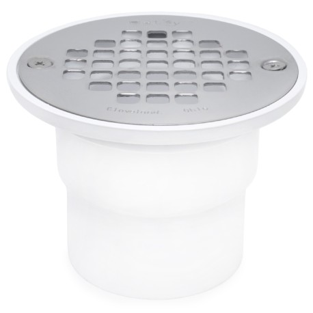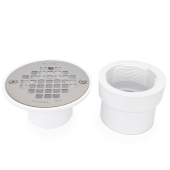 2" Hub, Solvent Weld PVC Drain for No-Liner Pan Showers, Screw-Tite Strainer, Receptor Base