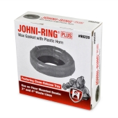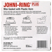 Standard size Oatey Johni-Ring wax gasket with plastic horn/flange - provides a permanent watertight seal on most types of toilet/closet flanges. Plastic flange allows for stacking multiple gaskets and facilitates drainage.