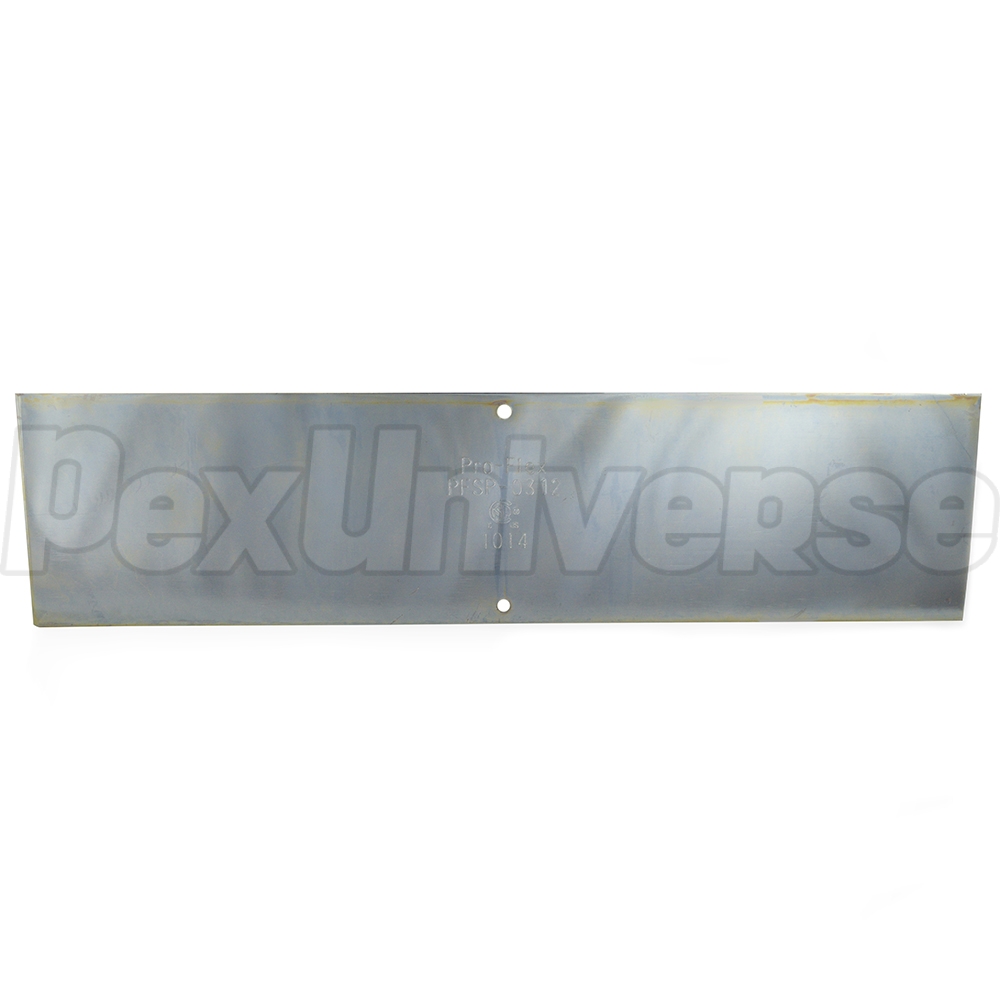 3" wide x 12" high, 16-gauge hardened steel striker plate protects CSST from nail & screw damage where pipe penetrates wall studs and floor joists.