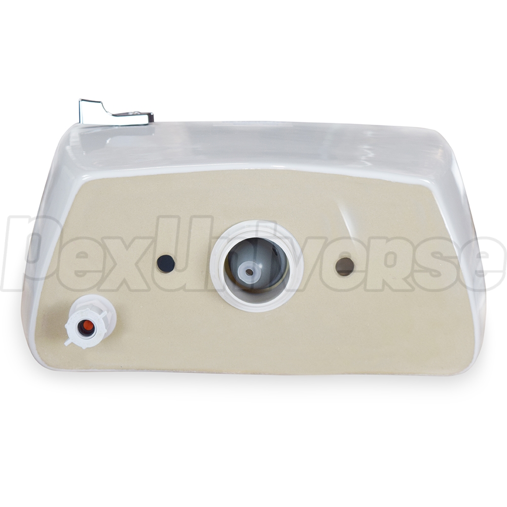 Toilet tank for use with SaniFlo 083 (round) and 087 (elongated) rear-outlet type toilet bowls. Insulated to prevent condensate. Includes integrated flush and fill valves as well as tank-to-bowl mounting hardware. 17-3/4" wide x 14-1/4" high x 8" deep. EPA WaterSense compliant.