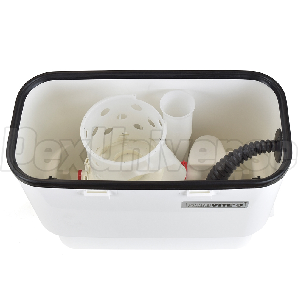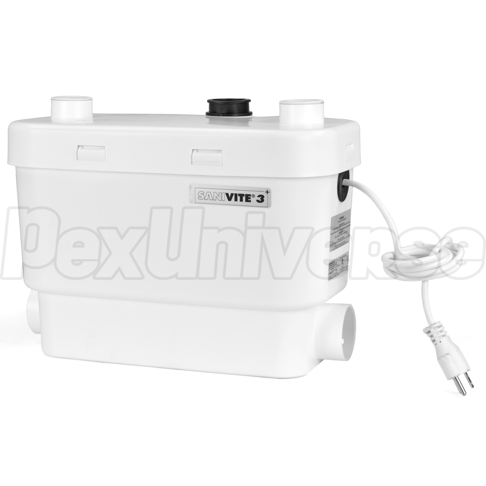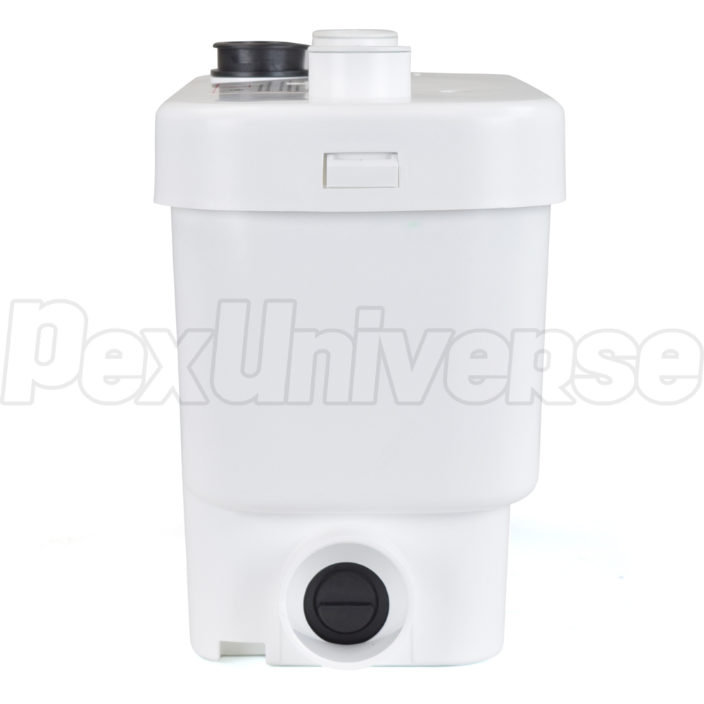 SaniVITE model drain pump incorporates a 4/10 HP pump build into a 3.7 gal collector basin. It is intended for use in high-volume residential drainage applications such as washing machines (indirectly connected via laundry sink), dishwashers, bathtubs, kitchen and bar sinks and others where these are located below the main sewer line. The basin features 1-1/2" or 1" discharge (adapter included), (3) inlets (2 x 2" - low inlets w/ built-in check valves on both sides, 1 x 1-1/2" - on top) and 1-1/2" vent connections.