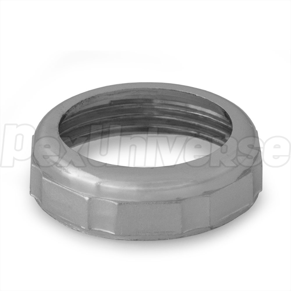 Standard chrome plated die cast zinc nut for use with 1-1/4" brass or plastic tubular.