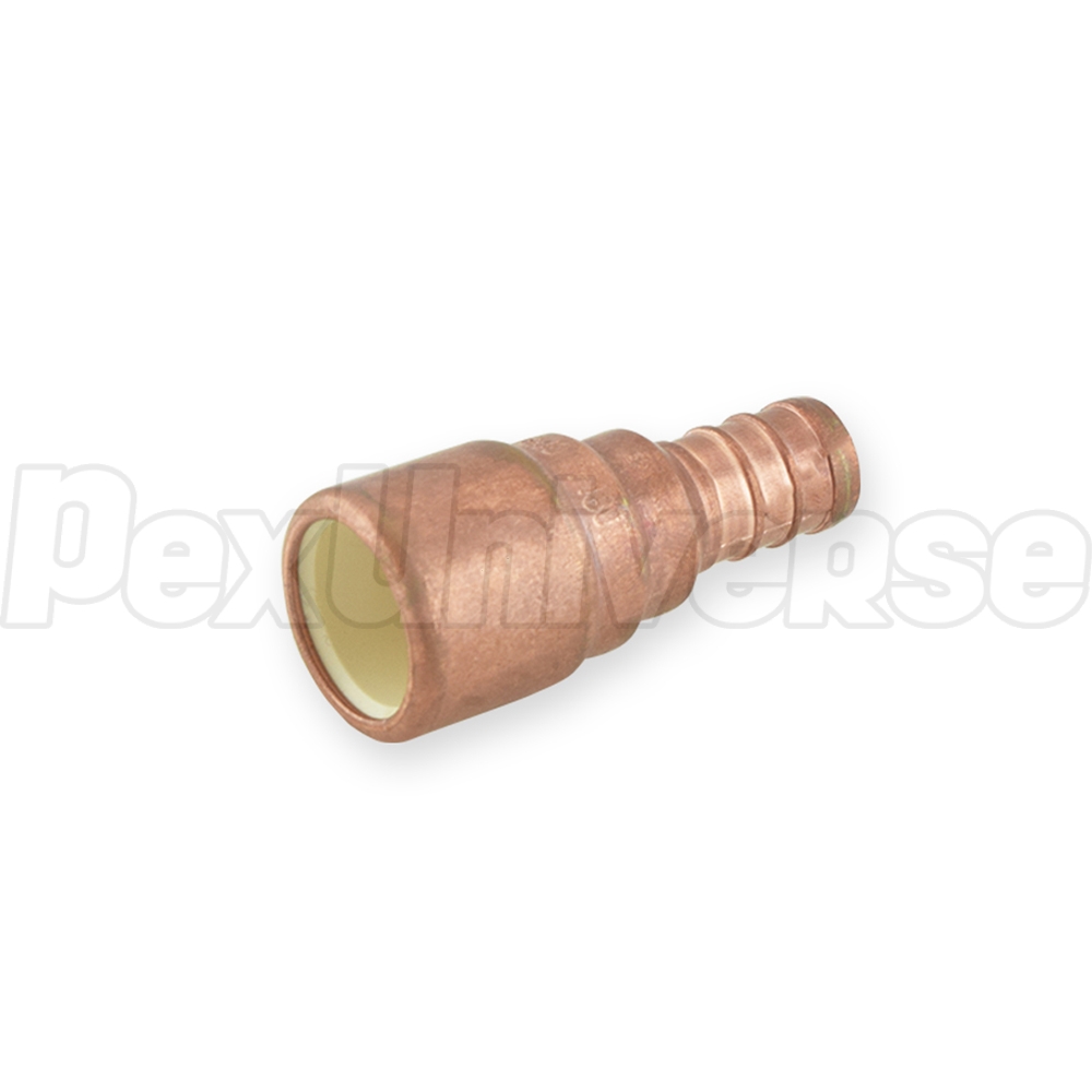 1/2" PEX x 1/2" CPVC adapter is used to make a transition between 1/2" PEX and 1/2" CPVC pipe in a straight line. PEX side is installed using either crimp (crimp rings + crimp tool) or clamp/cinch (clamp tool + clamps) method. CPVC side of the fitting is installed in the same way as regular CPVC connection. Made in the USA from copper and approved for potable water use nationwide.