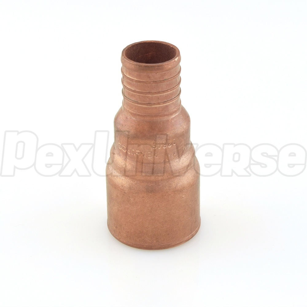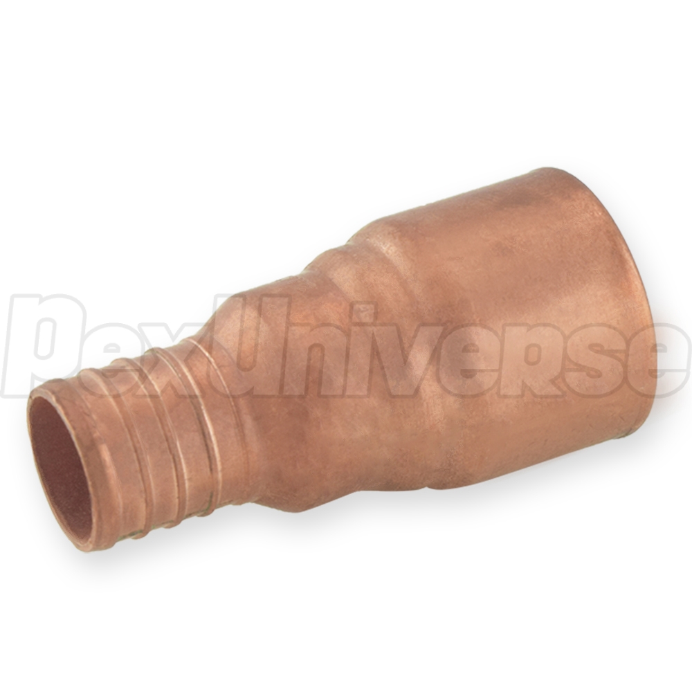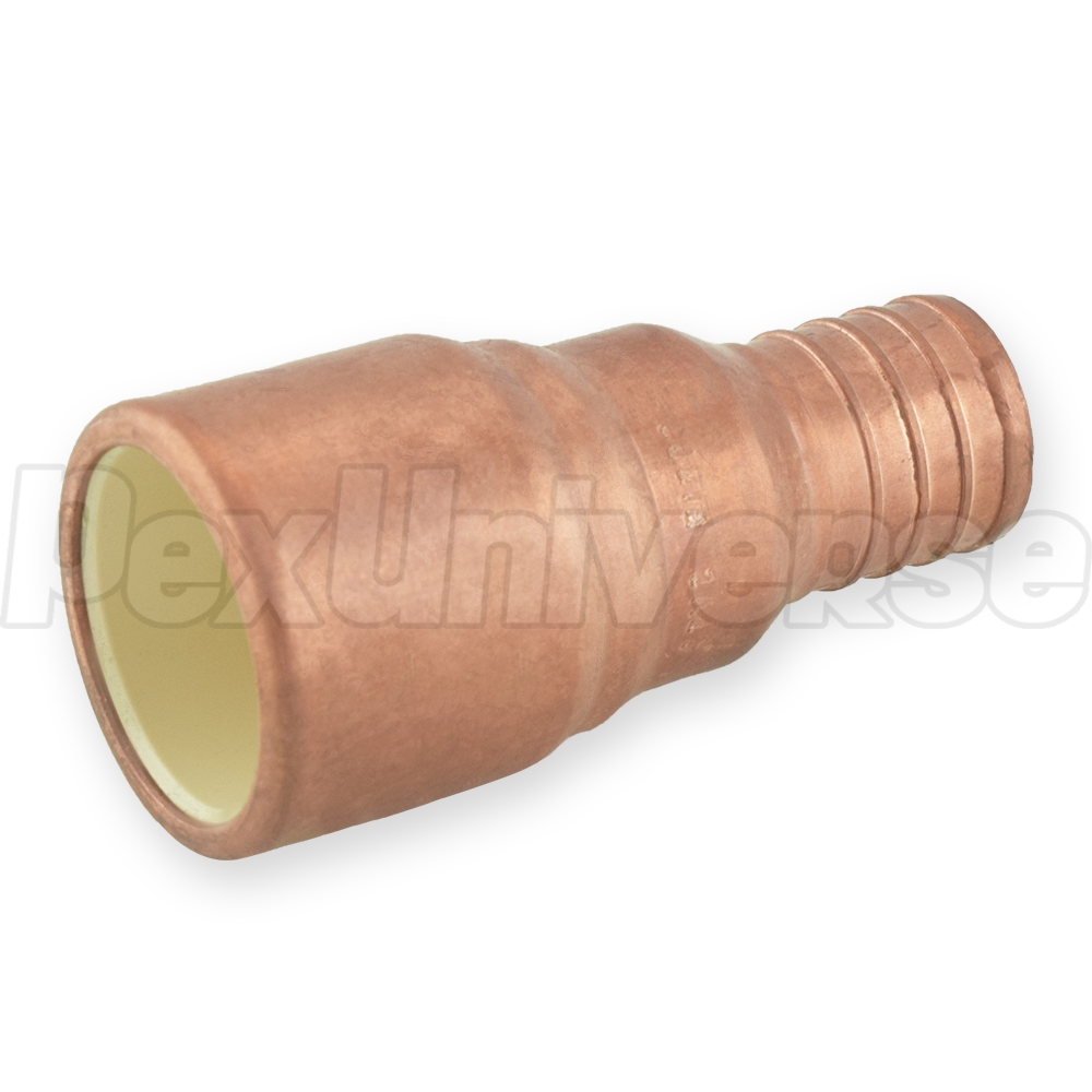 1" PEX x 1" CPVC adapter is used to make a transition between 1" PEX and 1" CPVC pipe in a straight line. PEX side is installed using either crimp (crimp rings + crimp tool) or clamp/cinch (clamp tool + clamps) method. CPVC side of the fitting is installed in the same way as regular CPVC connection. Made in the USA from copper and approved for potable water use nationwide.