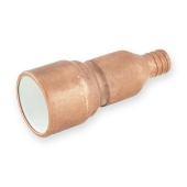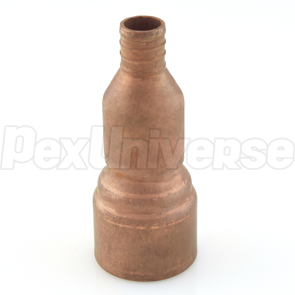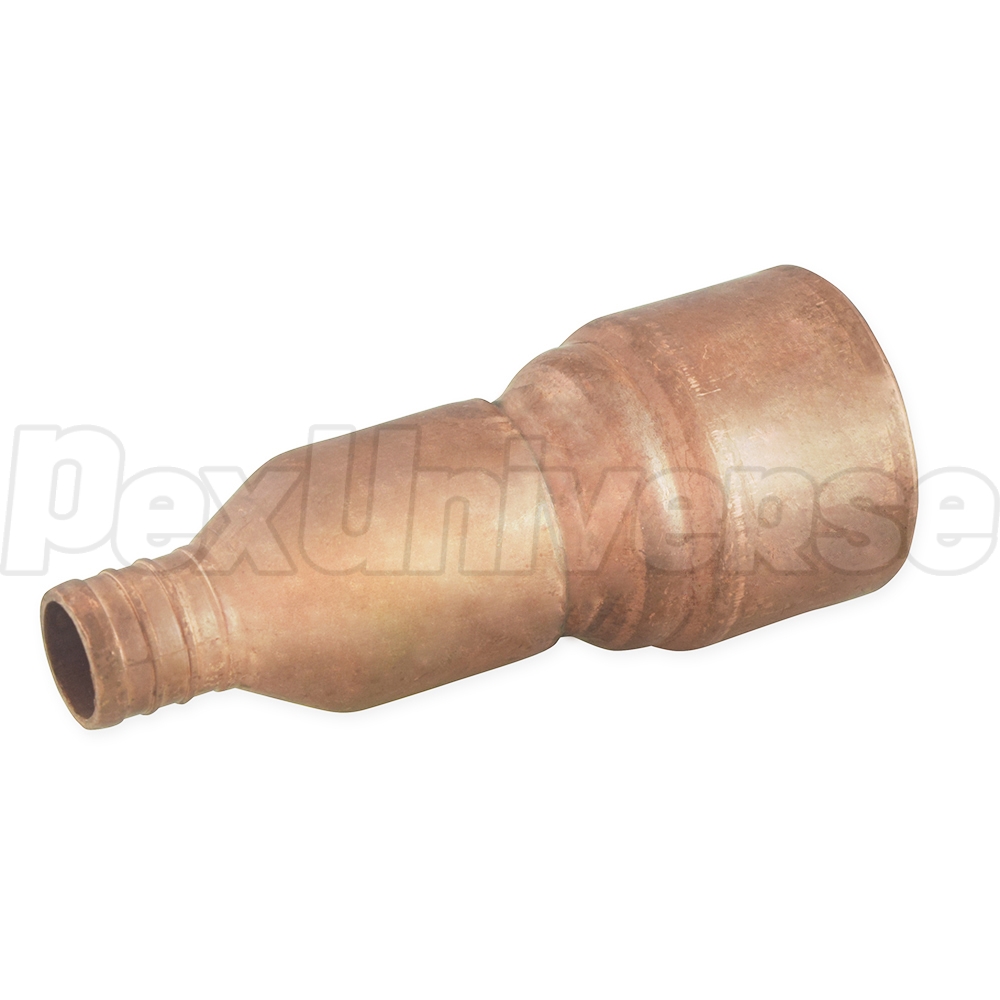 3/4" PEX x 1" PVC adapter is used to make a transition between 3/4" PEX and 1" PVC pipe in a straight line. PEX side of the fitting is installed using crimp (crimp rings + crimp tool) or clamp/cinch (clamp tool + clamps) connection method. PVC side of the fitting is installed in the same way as regular PVC connection (primer, glue). Made in the USA from copper.