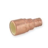 3/4" PEX x 3/4" CPVC adapter is used to make a transition between 3/4" PEX and 3/4" CPVC pipe in a straight line. PEX side is installed using either crimp (crimp rings + crimp tool) or clamp/cinch (clamp tool + clamps) method. CPVC side of the fitting is installed in the same way as regular CPVC connection. Made in the USA from copper and approved for potable water use nationwide.