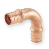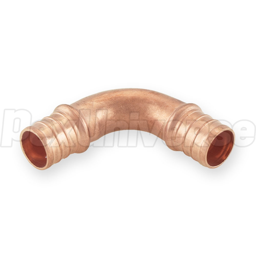 3/4" PEX elbow fitting allows to connect to 3/4" PEX pipes together at a 90-degree angle. Compatible with crimp or clamp connection systems. Made in the USA from lead-free copper and approved for potable water use.