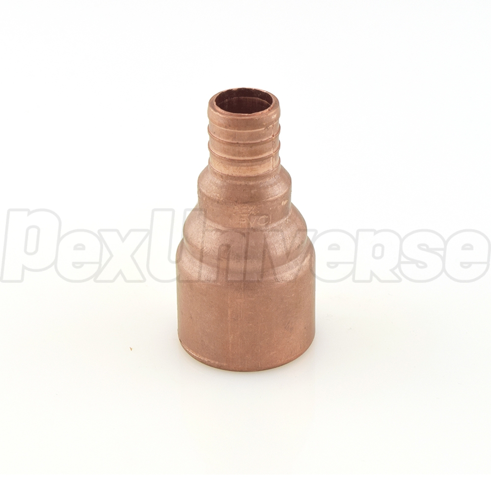 3/4" PEX x 3/4" PVC adapter is used to make a transition between 3/4" PEX and 3/4" PVC pipe in a straight line. PEX side of the fitting is installed using crimp (crimp rings + crimp tool) or clamp/cinch (clamp tool + clamps) connection method. PVC side of the fitting is installed in the same way as regular PVC connection (primer, glue). Made in the USA from copper.