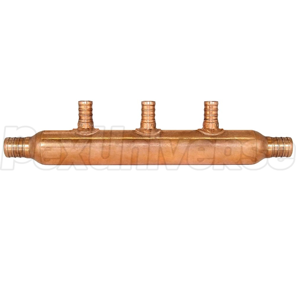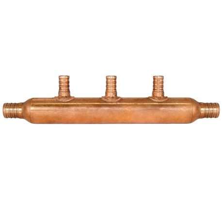 3-port Copper Manifold with 1/2" PEX branches, 3/4" PEX x Open