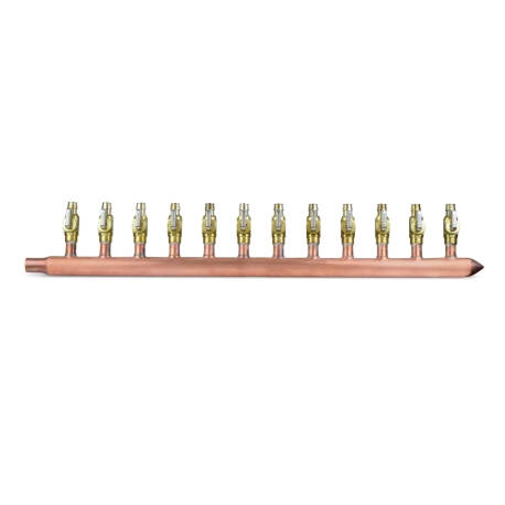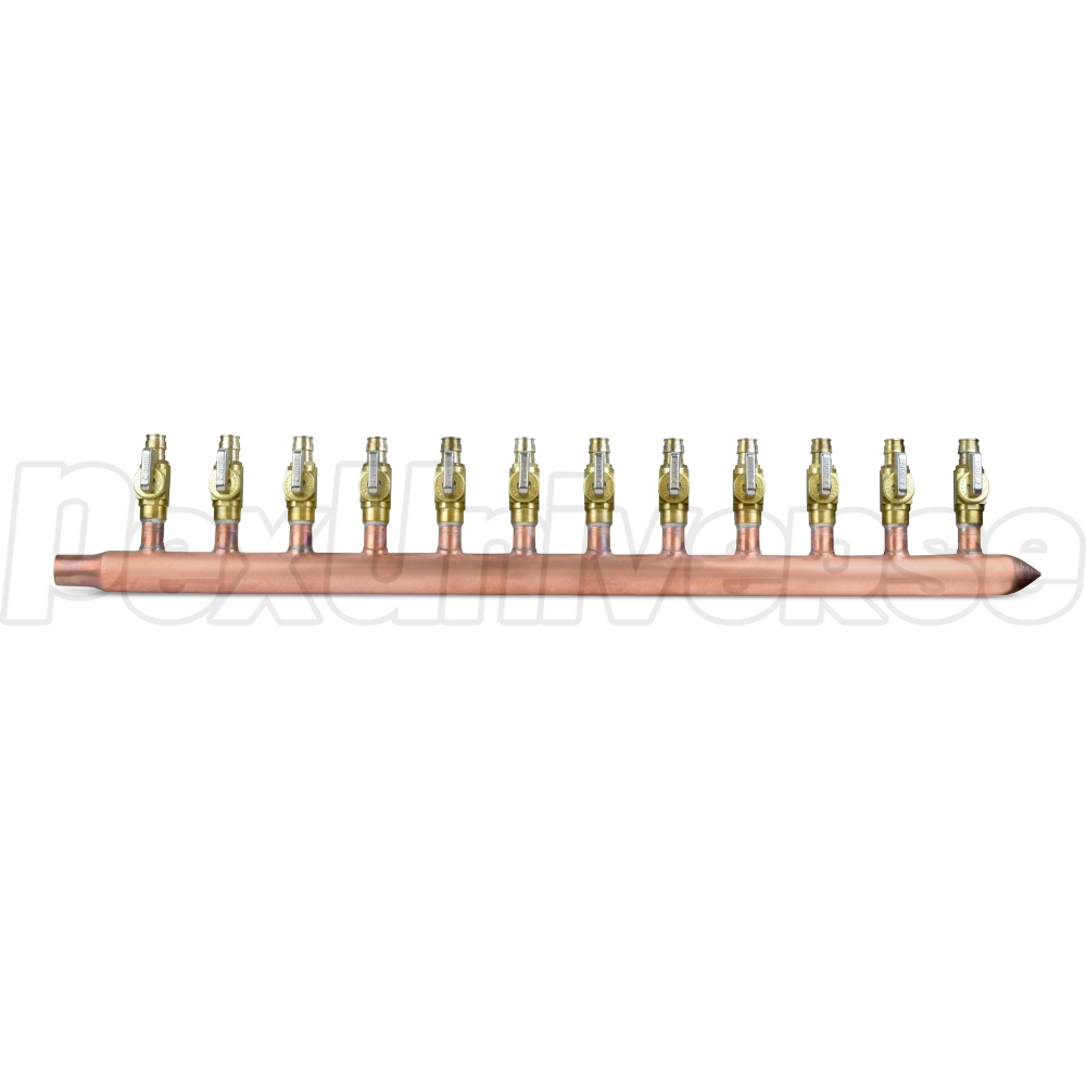 12-branch Copper Manifold w/ 1/2" PEX-A (F1960) Valves, 3/4" Male Sweat x Closed, Right-hand, LF