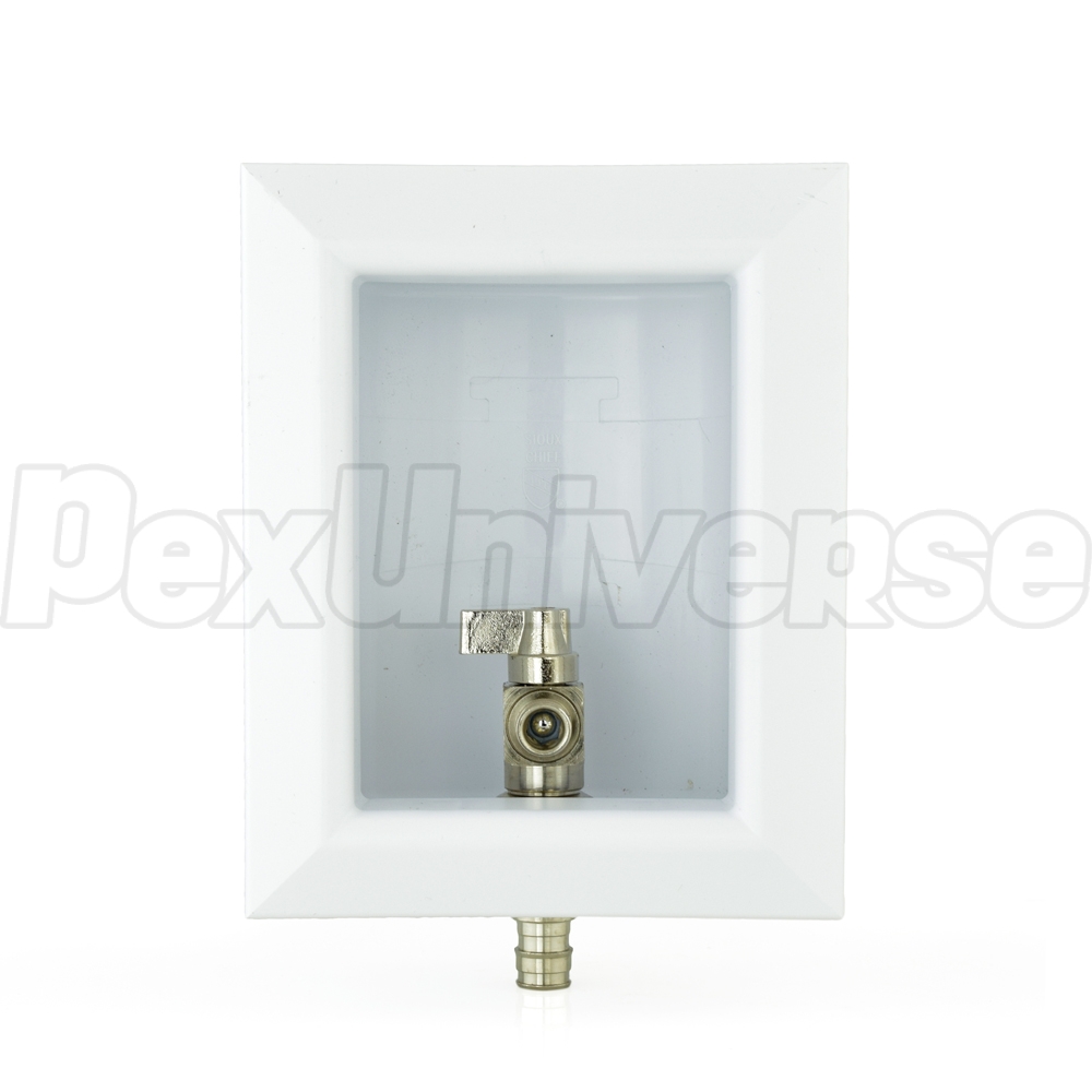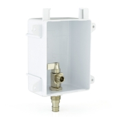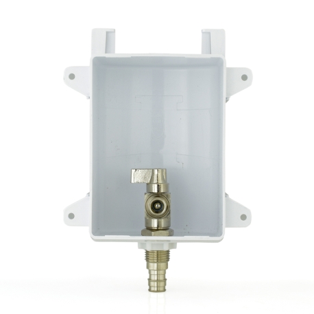 Sioux Chief Ox Box Toilet/Dishwasher Outlet Box kit with 1/2" PEX expansion connection (F1960). Includes (1) Outlet box with 1/4 turn ball valve (3/8" OD compression outlet) and frame, (1) Debris cover.