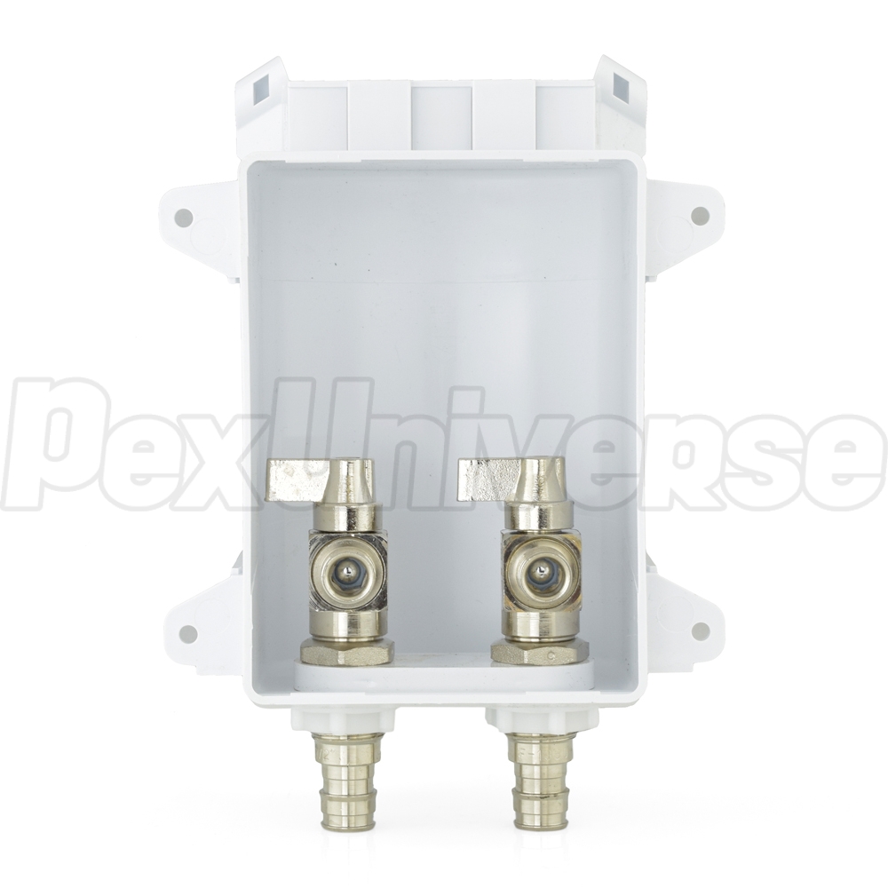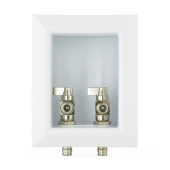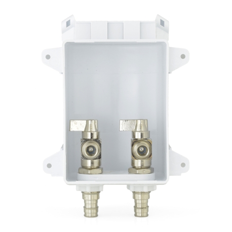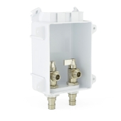 Sioux Chief Ox Box Lavatory Outlet Box kit with 1/2" PEX expansion connections (F1960). Includes (1) Outlet box with 1/4 turn ball valves (3/8" OD compression outlets) and frame, (1) Debris cover.