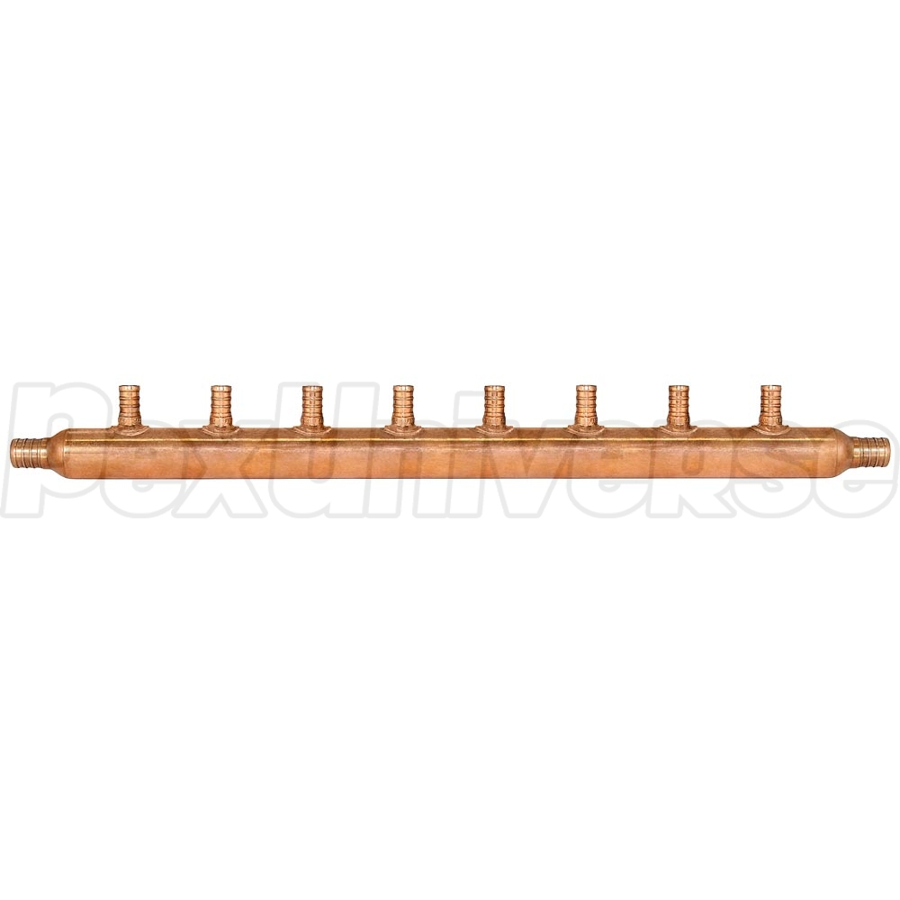 8-port Copper Manifold with 1/2" PEX branches, 3/4" PEX x Open