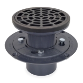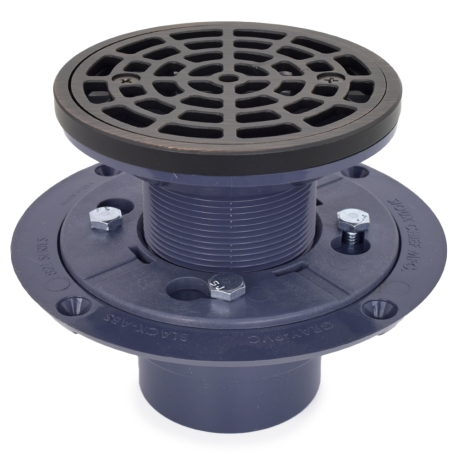 Round PVC Shower Tile/Pan Drain w/ Oil Rubbed Bronze Strainer, 2" Hub x 3" Inside Fit (less test plug)