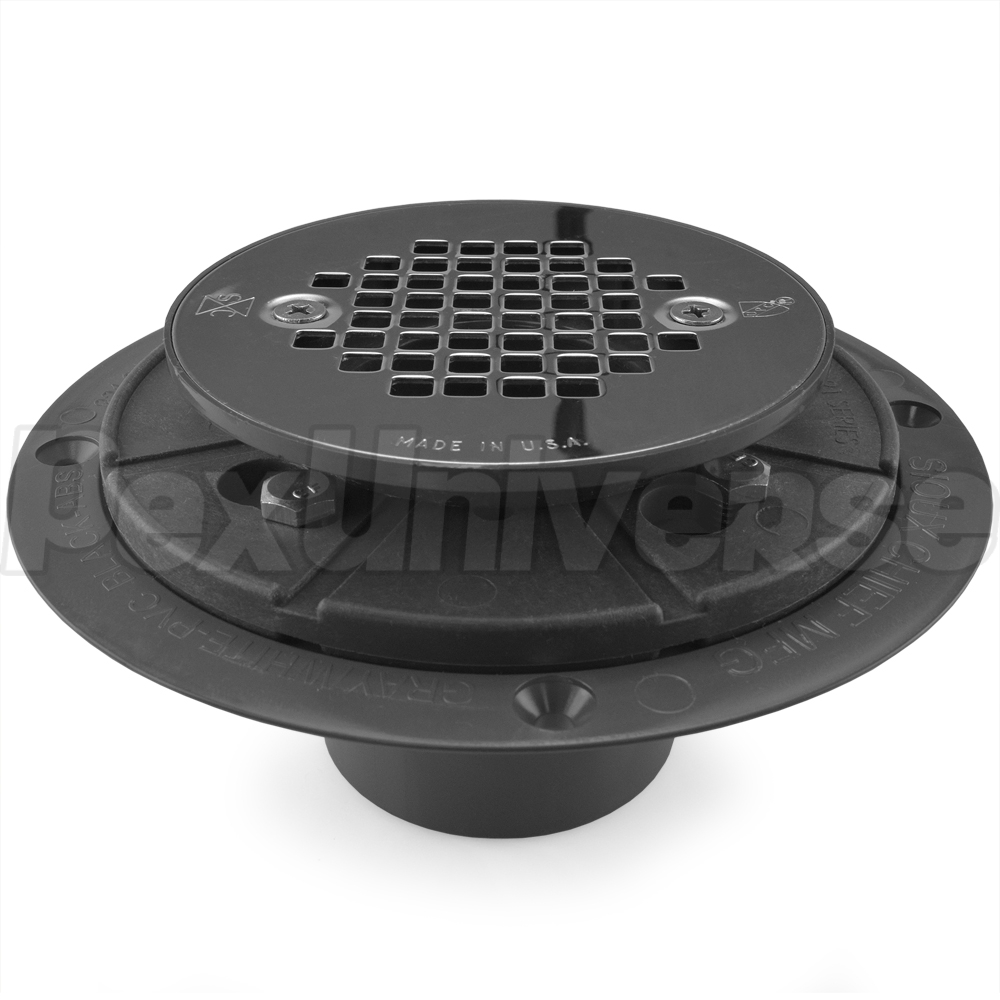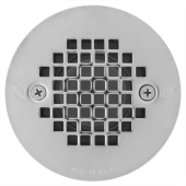 Round PVC Shower Pan Drain w/ Screw-on 19-Gauge St. Steel Strainer, 2" Hub x 3" Inside Fit