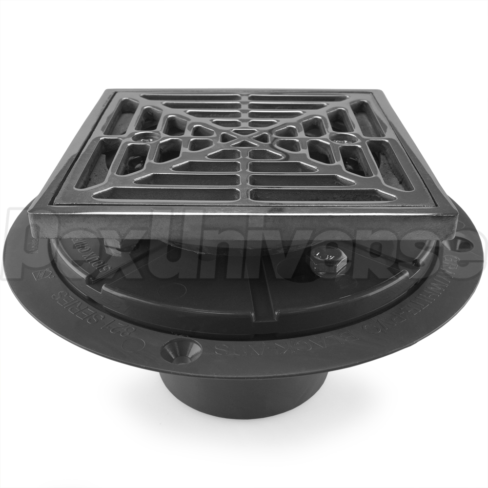 Sioux Chief 821 series, USA-made PVC drain for tile showers with solid cast, mirror polished 304 stainless steel square screw-on strainer and rim. Will not corrode over time and complements other shower/bathroom fixtures with mirror/polished chrome finish. Installed in combination with a shower pan liner and finished with tile. Adjustable height top easily accommodates various mortar bed thicknesses. Connects to standard 2" PVC drain pipe or inside a 3" PVC fitting. Premium quality & rugged, heavy-duty design.