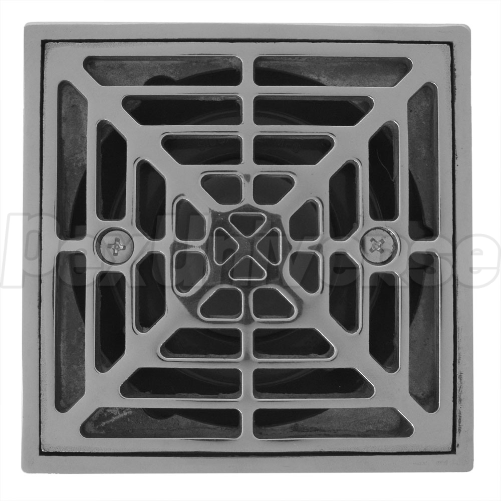Square PVC Shower Tile/Pan Drain w/ Polished Steel Strainer, 2" Hub x 3" Inside Fit