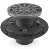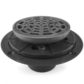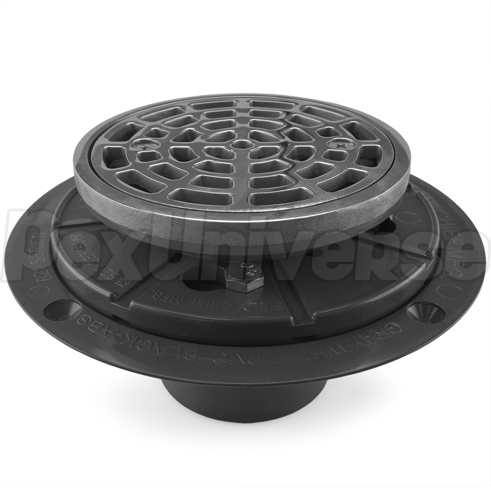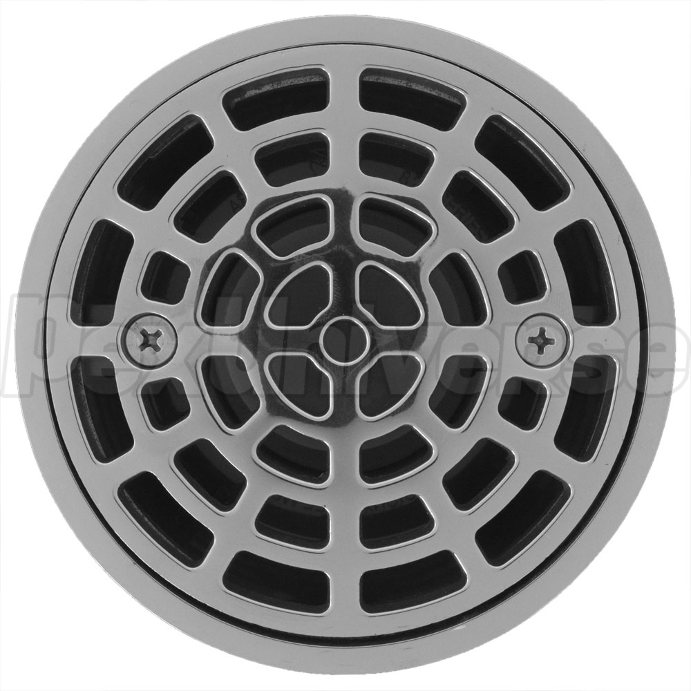 Round PVC Shower Tile/Pan Drain w/ Polished Steel Strainer, 2" Hub x 3" Inside Fit