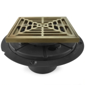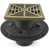 Sioux Chief 821 series, USA-made PVC drain for tile showers with solid cast, brushed nickel bronze square screw-on strainer and rim. Will not corrode over time and complements other shower/bathroom fixtures with brushed brass or bronze finish. Installed in combination with a shower pan liner and finished with tile. Adjustable height top easily accommodates various mortar bed thicknesses. Connects to standard 2" PVC drain pipe or inside a 3" PVC fitting. Premium quality & rugged, heavy-duty design.