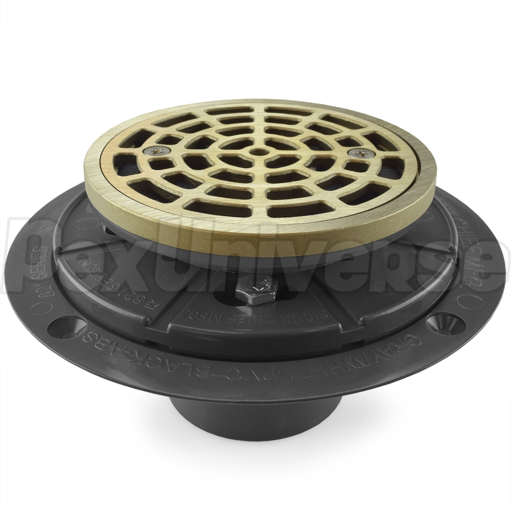 Round PVC Shower Tile/Pan Drain w/ Brushed Bronze Strainer, 2" Hub x 3" Inside Fit