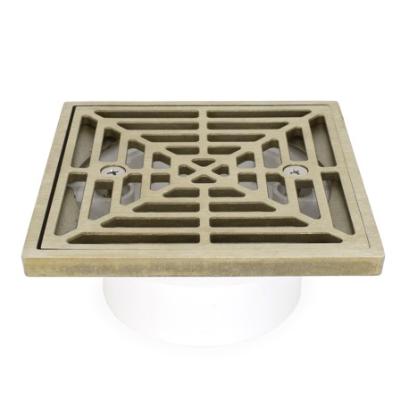 PVC Floor Drain w/ Square Nickel Bronze Strainer & Ring, 2" Hub x 3" Inside Fit