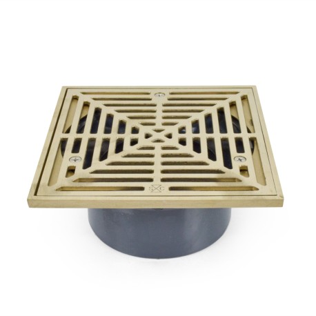 PVC Floor Drain, Square, Nickel Bronze, PVC 4" Hub