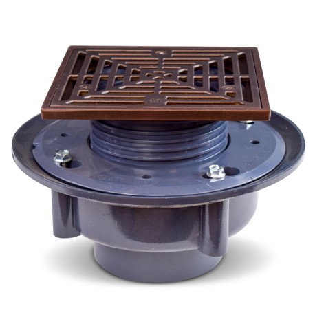 High-Capacity, Square PVC Shower Tile/Pan Drain w/ Oil Rubbed Bronze Strainer, 3" Hub