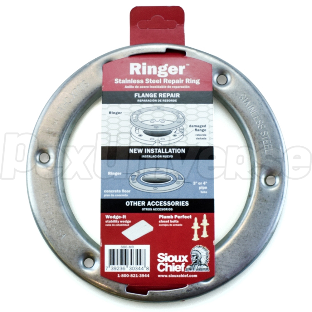 This corrosion-resistant stainless steel closet ring fits securely over flanges in new floor installations or may be used to repair damaged or worn-out closet flanges in existing installations.