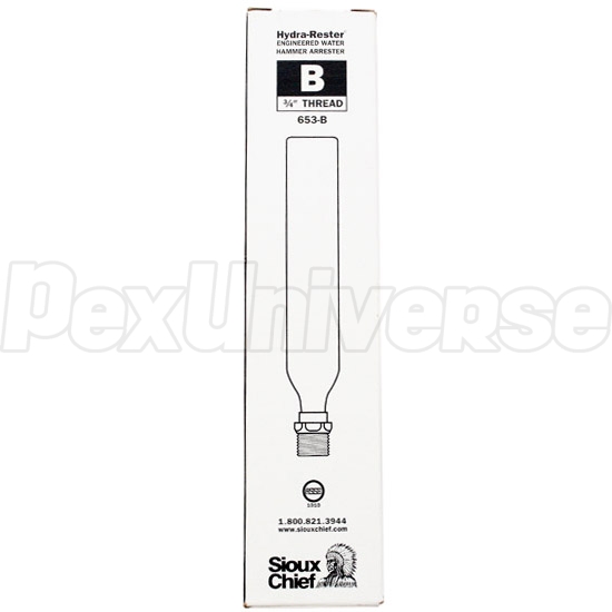 Hydra-Rester Commercial Water Hammer Arrestor (653-B) 3/4" MIP Thread can be used in multi-fixture Plumbing groups. This product is appropriate for hot water branch line equal to 6 fixture. The Hydra-Rester (653-B) is made from no-lead components and complies with California AB 1953.