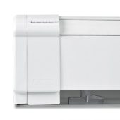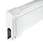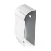 Hinged slip-on Left end cap for Fine/Line 30 baseboard by Slant/Fin. This cap features a cut-out on the side, which allows the pipe to pass through the cap and into the adjacent wall. Hinged cover provides convenient access to an air bleeder valve or a temperature regulating or shut-off valve. Also allows to cover small gaps between the baseboard and adjacent wall. Drawn steel design with rounded edges offers a better look and is safer than welded counterparts. White enamel finish.