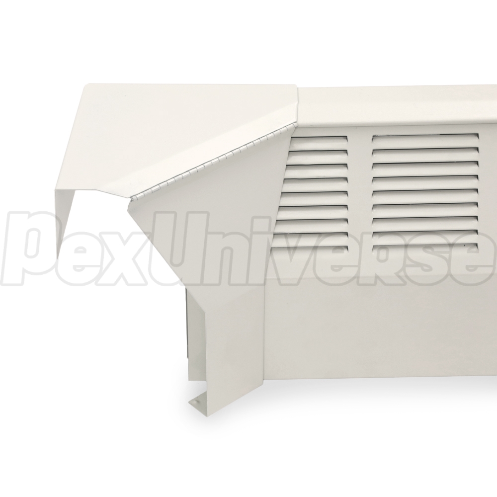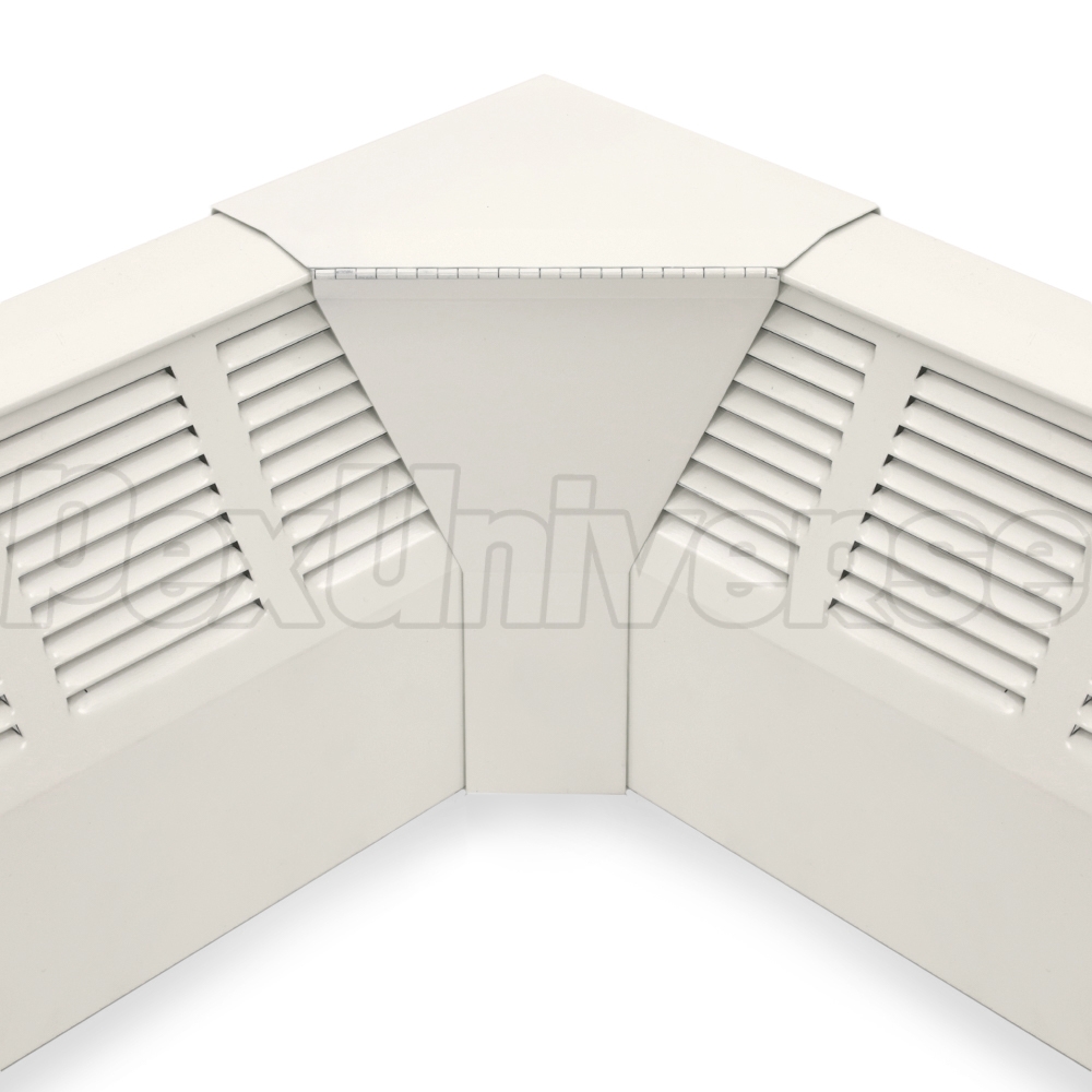 Covers the gap between two 350-10 series baseboards installed in a typical 90° corner. White enamel finish.
