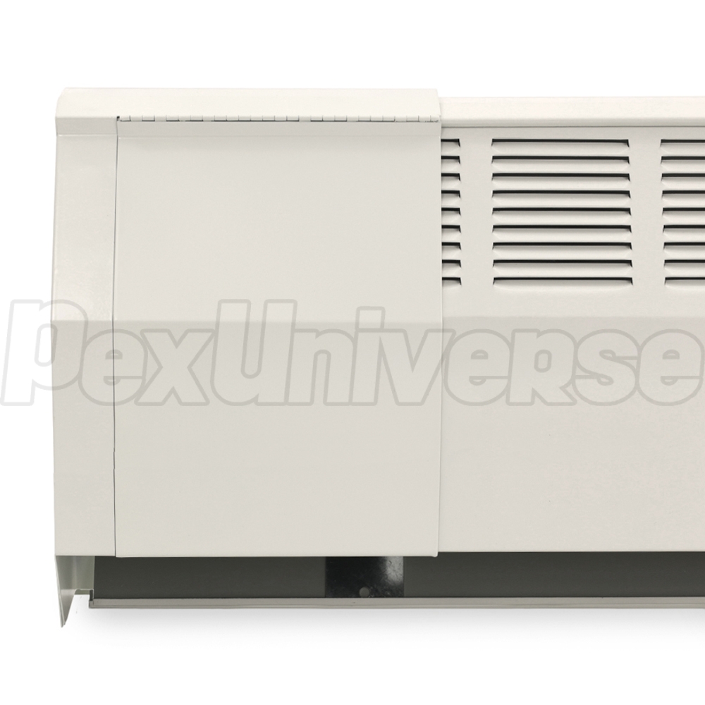 Extra-wide hinged slip-on Left valve cover for 350-14 baseboard by Slant/Fin, provides convenient access to shut-off, temperature regulating or an air bleeder valve. Allows to cover medium gaps between the baseboard and adjacent wall. White enamel finish.