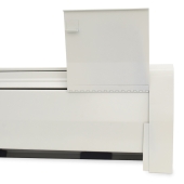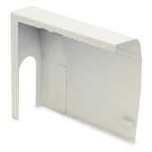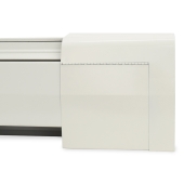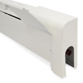 Extra-wide slotted hinged slip-on Right valve cover for Multi/Pak 88 baseboard by Slant/Fin - designed to provide convenient access to an air bleeder valve or a temperature regulating or shut-off valve. Allows to cover medium gaps between the baseboard and adjacent wall. Drawn steel design with rounded edges offers a better look and is safer than welded counterparts. White enamel finish.