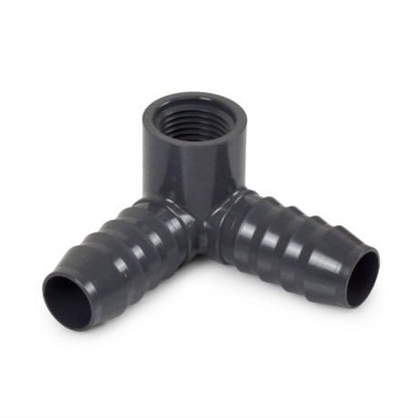 3/4" Barbed Insert x 1/2" Female NPT Side Outlet 90° PVC Elbow, Sch 40, Gray