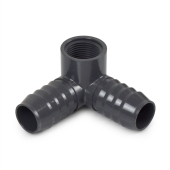 1" Barbed Insert x 3/4" Female NPT Side Outlet 90° PVC Elbow, Sch 40, Gray
