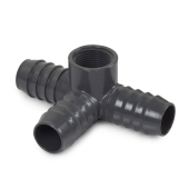 1" Barbed Insert x 3/4" Female NPT Side Outlet PVC Tee, Sch 40, Gray