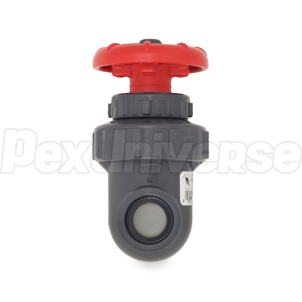 Heavy-duty Sch 80 PVC gate valve with 3/4" Socket (Hub) connections on both sides.