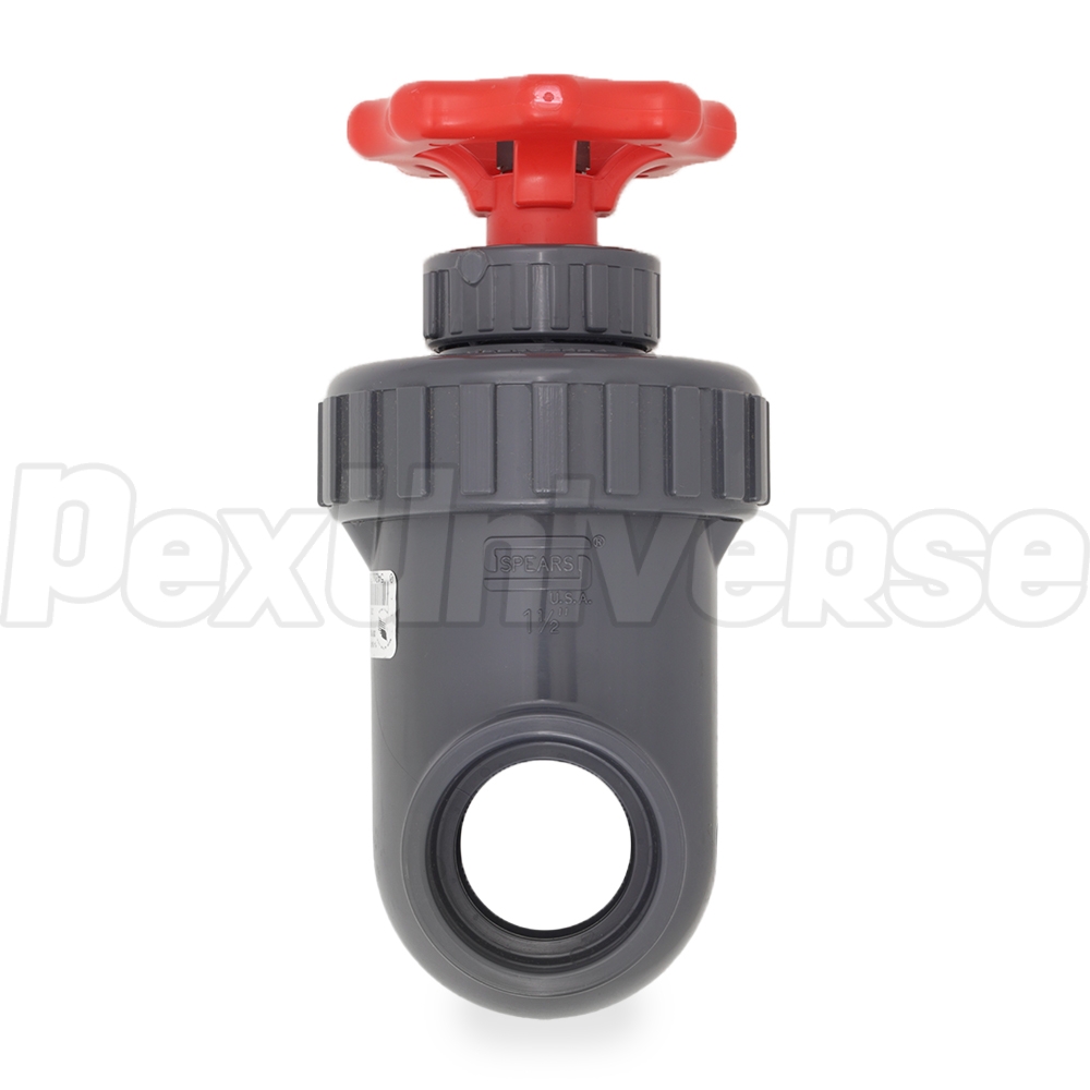 Heavy-duty Sch 80 PVC gate valve with 1-1/2" Socket (Hub) connections on both sides.