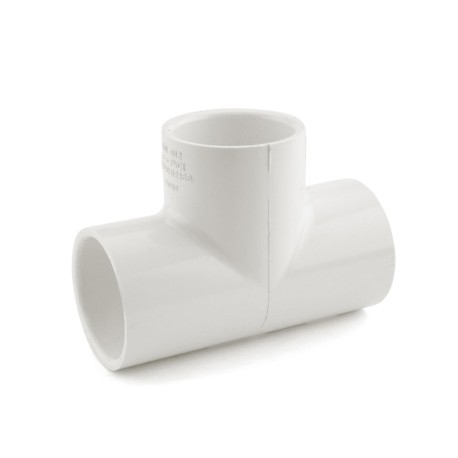 This schedule 40 tee connects three 1-1/4" PVC pipes in a T-pattern. Socket (hub) connections on all outlets.