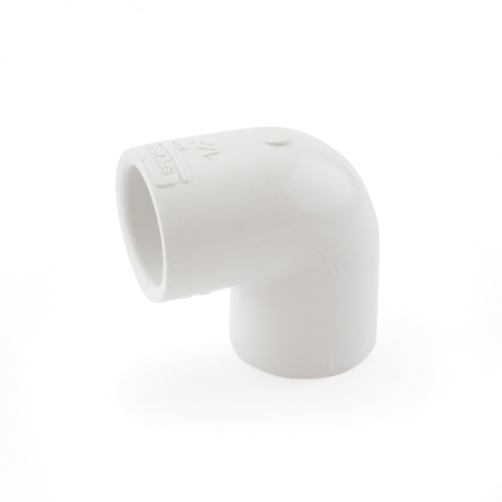 This schedule 40 elbow fitting is used to connect two 1/2" PVC pipes together at a 90-degree angle. Socket (hub) connections on both outlets.