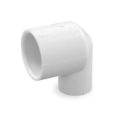 This schedule 40, 90-degree elbow fitting is used to connect two 1" and 1/2" PVC pipes together at a 90-degree angle. Socket (hub) connections on both outlets.