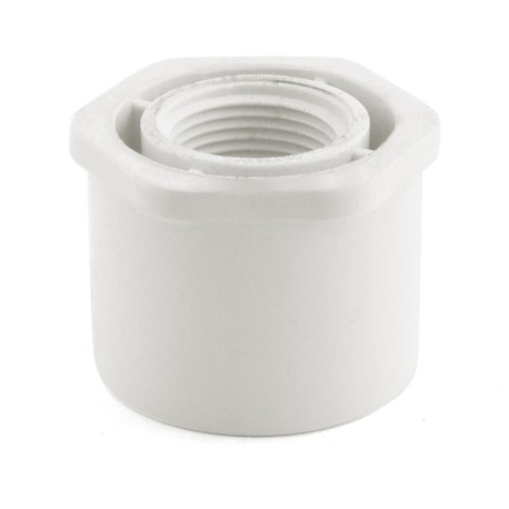 This schedule 40 bushing adapts 3/4" threaded PVC pipe inside a 1-1/2" PVC fitting. Spigot x FIP (female threaded) connections.